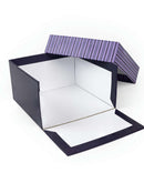 Introducing our Pastel Purple Stripes cake boxes—meticulously crafted from high-quality rigid board, featuring a convenient one-side open design.